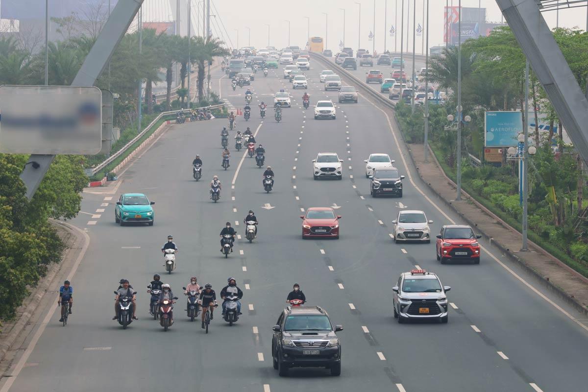 Không chỉ xảy ra ô nhiễm, trong ngày đầu tiên sau kỳ nghỉ lễ Giỗ Tổ, tình trạng tắc đường tại nhiều tuyến phố đã xảy ra. Nút giao khu vực Ngã tư Vọng, các phương tiện chật vật di chuyển.