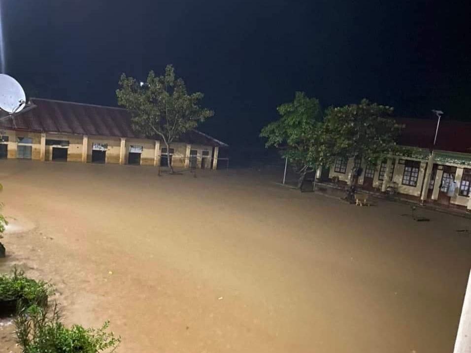 Mưa lũ khiến trường THCS Tạ Khoa, xã Tạ Khoa, huyện Bắc Yên, tỉnh Sơn La chìm trong biển nước. Ảnh: ĐVCC