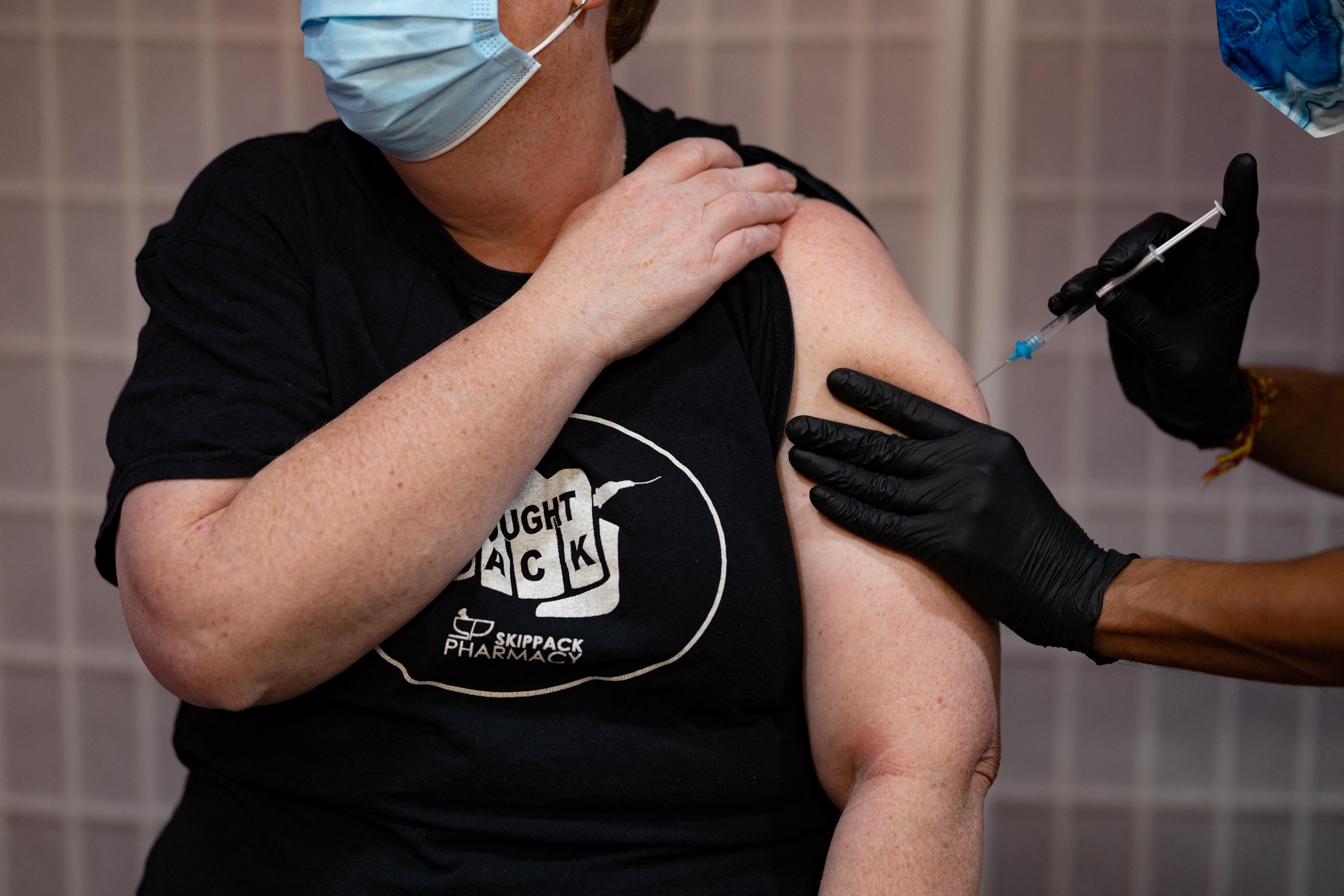 Một người Mỹ nhận mũi vaccine tăng cường nhắm vào biến chủng phụ Omicron BA.4 và BA.5 hôm 8/9. Ảnh: Reuters.