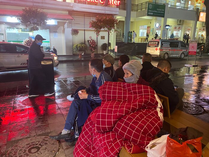 "Những ngày không mưa còn đỡ, nhưng gần đây trời vừa mưa vừa rét, gió lùa buốt tận óc, khiến việc chờ đợi bên ngoài bệnh viện càng thêm khổ cực.