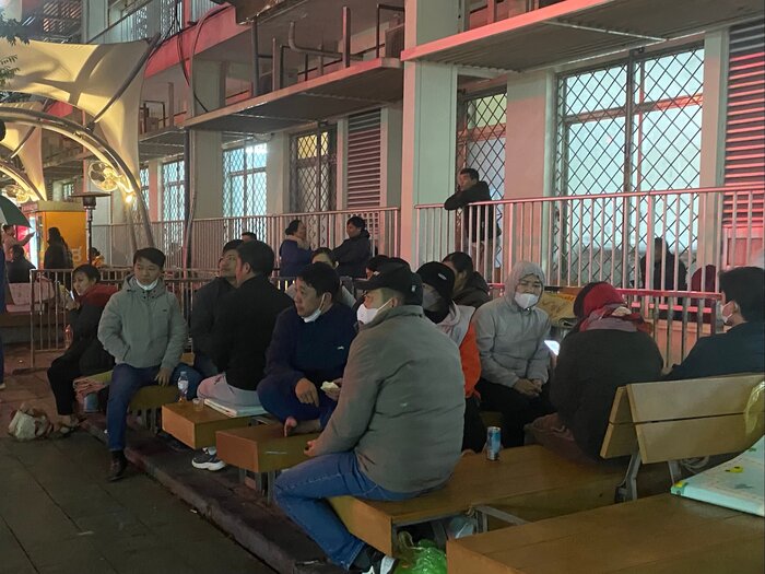 Hành trang của họ chỉ là những chiếc chiếu, chăn mỏng và vài lớp áo khoác. Do mệt mỏi, nhiều người đã ngủ gục ngay trên những chiếc ghế đá của bệnh viện.