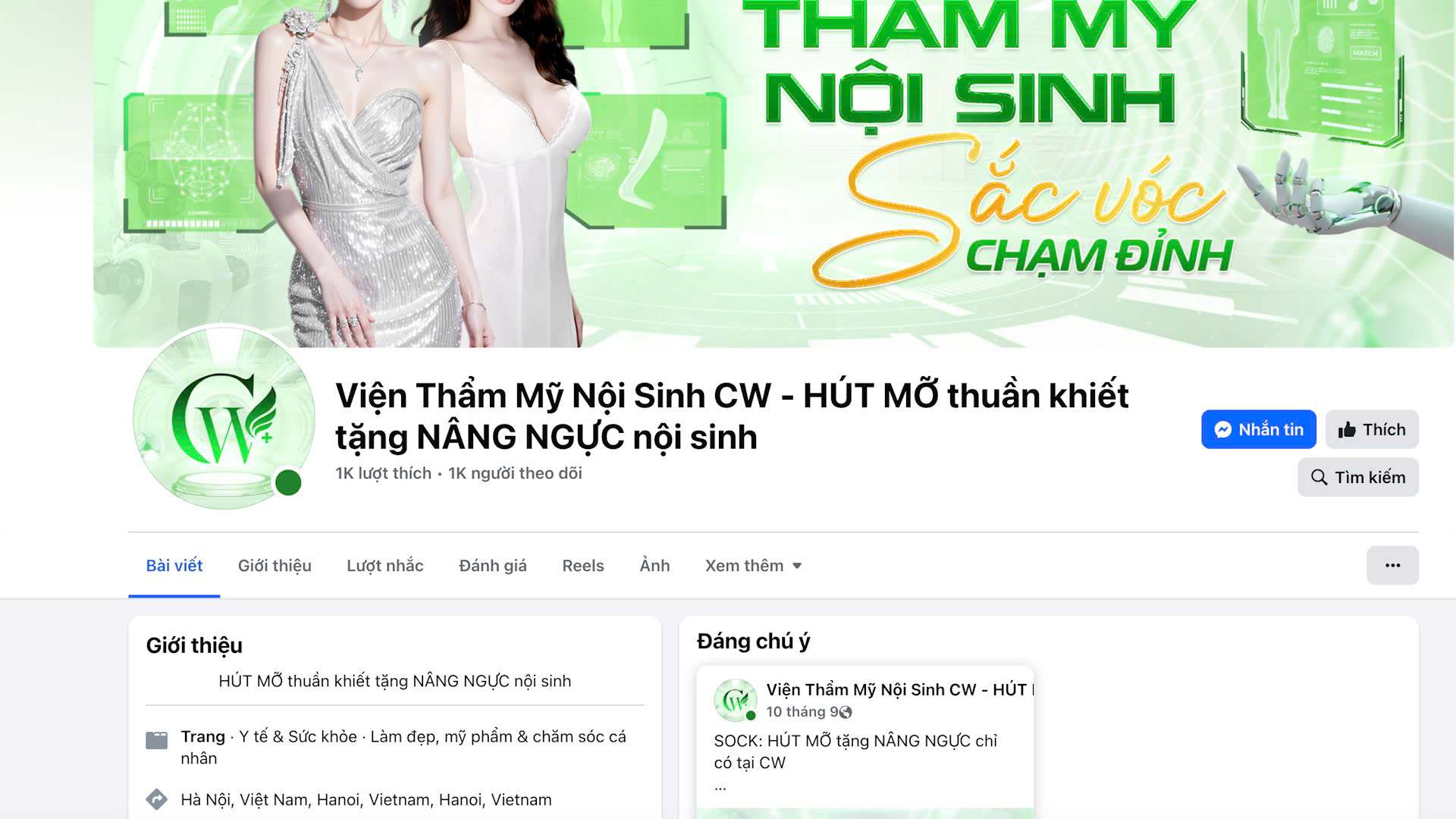 Thời gian gần đây, hàng loạt quảng cáo từ một cơ sở mang tên “Viện thẩm mỹ nội sinh CW - Hút mỡ thuần khiết, tặng nâng ngực nội sinh” xuất hiện trên nhiều nền tảng mạng xã hội, với hình ảnh đại diện là một “bác sĩ” được tạo bằng AI, thu hút sự chú ý của nhiều khách hàng. Quảng cáo nhấn mạnh dịch vụ làm đẹp bằng tế bào gốc nội sinh lấy từ chính cơ thể người (một dịch vụ chưa được Bộ Y tế cấp phép - PV). PV đã liên hệ cơ sở để ghi nhận thực tế quá trình tư vấn và thực hiện dịch vụ.